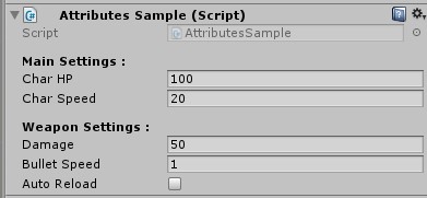 We can use Inspector Attributes to slightly change the look of our script in the inspector.